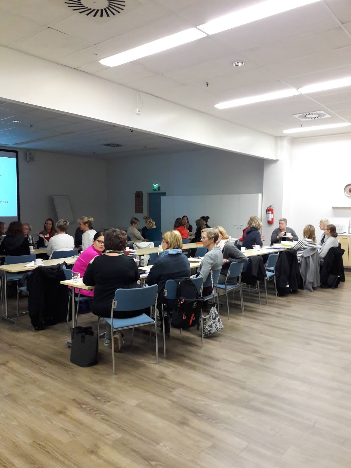 MUN PÄIVÄKOTI - hankkeen kehittämispäiväkodit kokoontuivat yhteiseen kehittämispäivään 4.10.2018 Lahden Scandic Cityn kokoustiloihin. Paikalla oli 25 osallistujaa, jokaisesta kehittämispäiväkodista oli paikalla ainakin yksi edustaja.